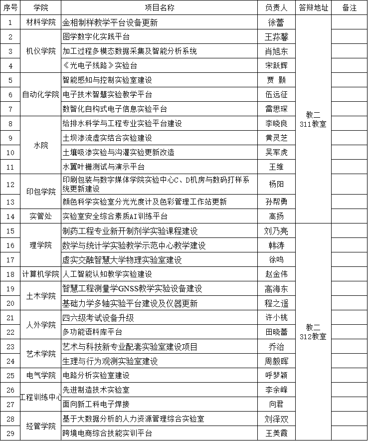 实验室管理处根据《西安理工大学教学建设工作管理办法》和《关于申报2025年教学建设项目的通知》,结合学校实验室建设经费预算总额,按照保障重点、持续改善、稳步推进的原则,安排以下项目参加第一批立项答辩(答辩名单见附件)。评审组专家将根据申报项目立项的轻重缓急情况,确定立项名单和支持金额。请各项目组特别是大额度项目组做好资金配套,确保项目顺利推进。答辩具体安排如下: