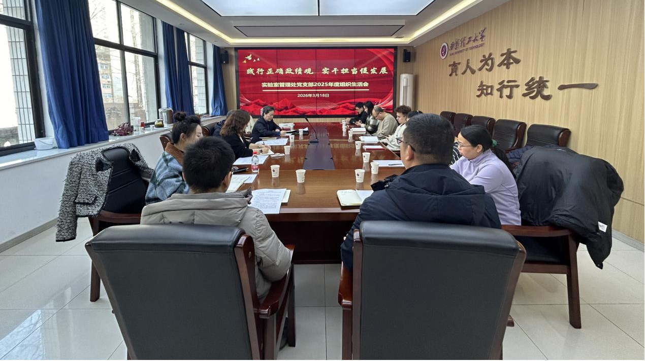 3月18日下午实验室管理处党支部在教二楼314室召开2025年度组织生活会。机关党委书记澹台湛到会指导,会议由支部书记高新勤主持,支部全体党员参加会议。